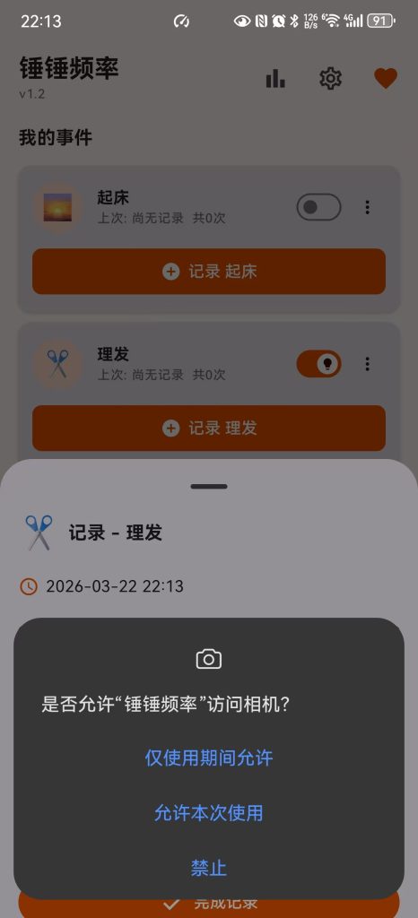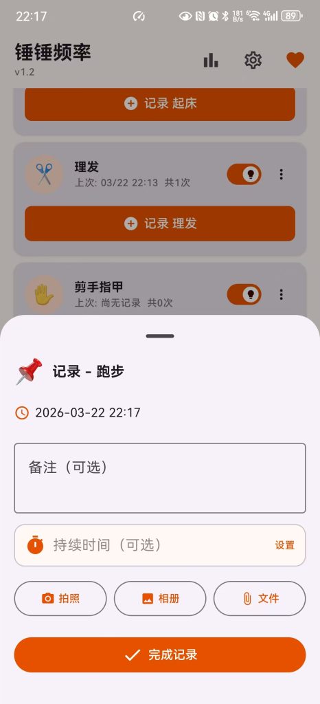 - 一键记录:点击卡片上的按钮立即记录该事件